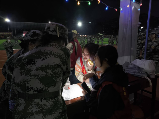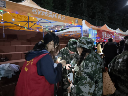 志愿者们如同勤劳的蜜蜂,有条不紊地将棚子支起,把桌子摆放整齐,精心布置着招新现场。那一顶顶棚子,就像是一朵朵绽放的花朵,在秋风中摇曳生姿,仿佛在向新生们招手。随着新生军训休息时间的到来,招新活动正式拉开帷幕。