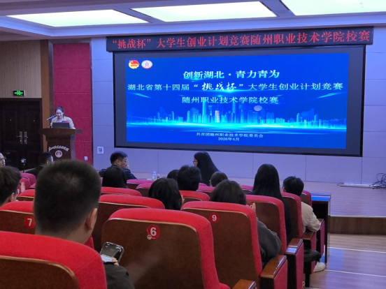 4月8日下午,第十四届“挑战杯”大学生创业计划竞赛校赛在随州职业技术学院学术报告厅成功举办20支经过前期筛选的项目团队参赛。特邀专家评委、校团委全体人员、各二级学院团总支书记,双创教研室全体教师及部分师生代表参加了此次活动
